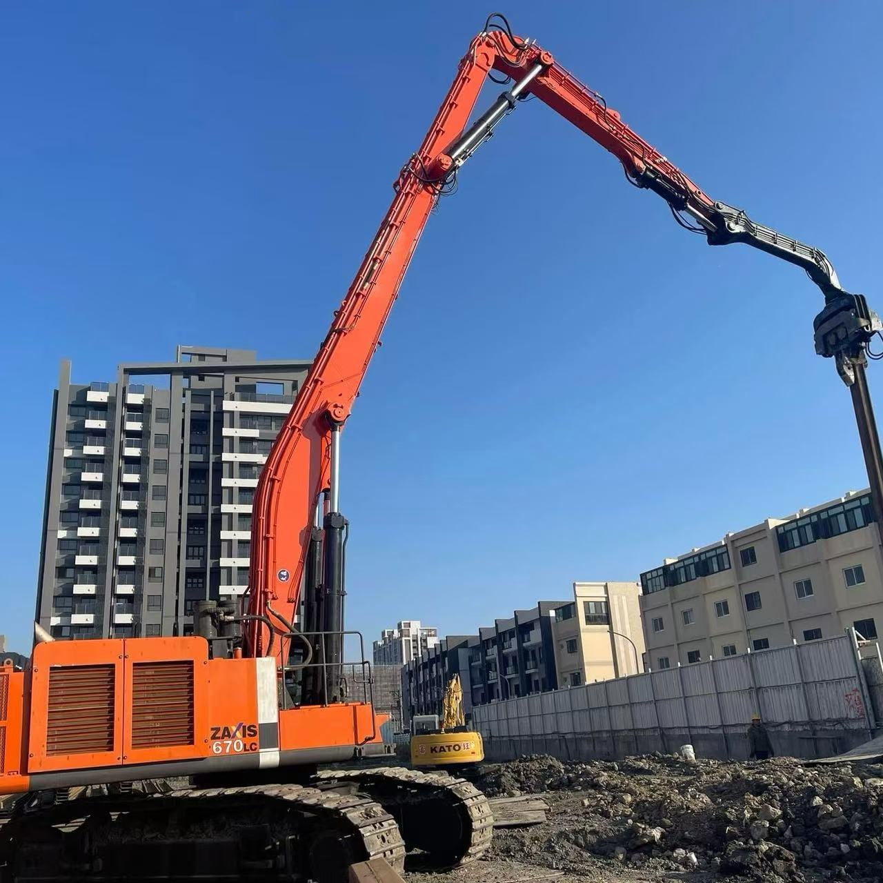Built on the powerful ZX670 platform, this piling boom and arm offers enhanced stability, strong lifting capacity, and excellent vertical control during piling operations.